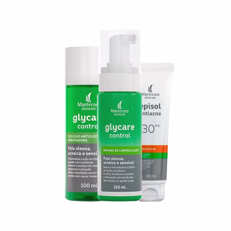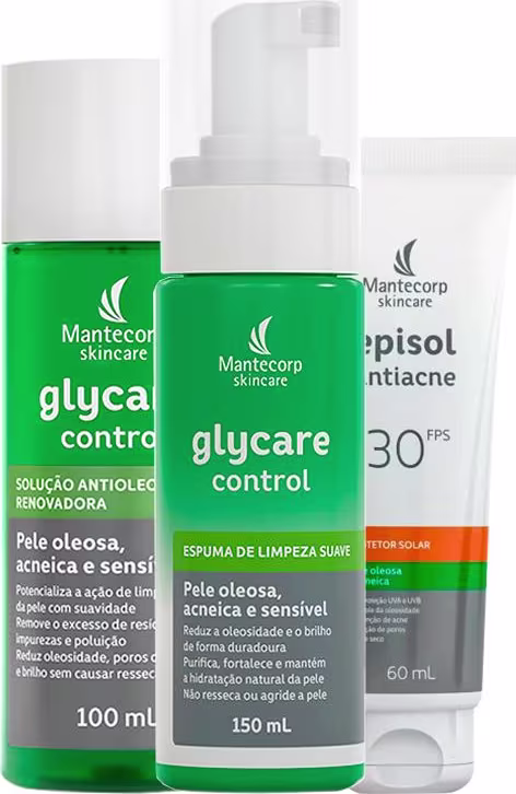 Glycare Control Solução Antiolesidade é uma solução sem enxágue de rápida absorção com eficácia e suavidade para peles oleosas, acenicas e sensíveis que complementa e potencializa a ação da limpeza da pele, removendo o excesso de resíduos, impurezas e poluição, sem causar ressecamento ou repusamento. Possui em sua formulação o Ácido Glicólico associado è Gluconolactona, PCA de Zinco, Aloe Vera e Ácnilys e Extrato de Hamamelis que associados, estimulam a renovação celular, equilibram o microbioma e reduzem acne, poros dilatados, brilho e oleosidade excessiva da pele.Glycare Control Solução Antiolesidademantém p pH fisiológico da pele, fortalecendo e proporcionando uma pele limpa, macia, saudável e equilibrada, com sensação de frescor e feito matte.