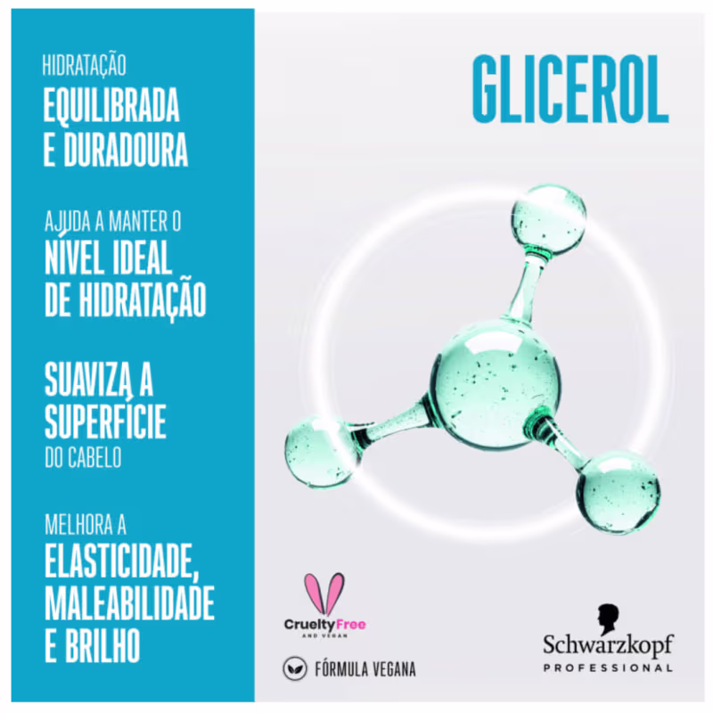 Benefícios e tecnologiaGlicerol: proporciona hidratação equilibrada e duradoura por até 48 horas, suavizando e protegendo os fios