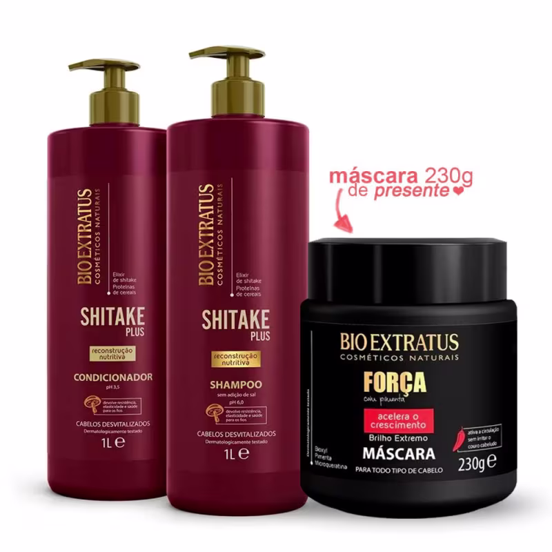 Kit Shampoo+Cond Shitake Plus Bio Extratus 1 Litro +Máscara Força 230g