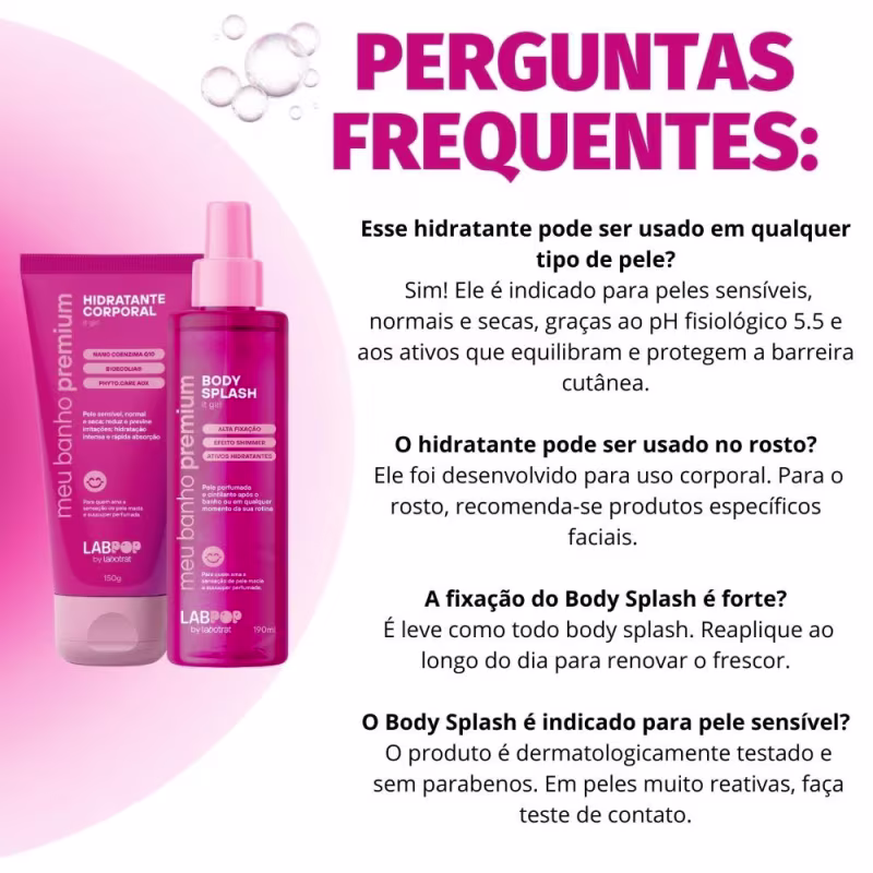 Não sei o CEPDescubra o cuidado premium com o Kit LabPop by Labotrat It Girl, uma combinação exclusiva de Hidratante Corporal e Body Splash. Transforme sua rotina de beleza em um momento de sofisticação e bem-estar, ideal para todos os tipos de pele. Este kit foi desenvolvido com tecnologia de ponta para proporcionar hidratação intensa e uma fragrância duradoura, elevando sua experiência de autocuidado.