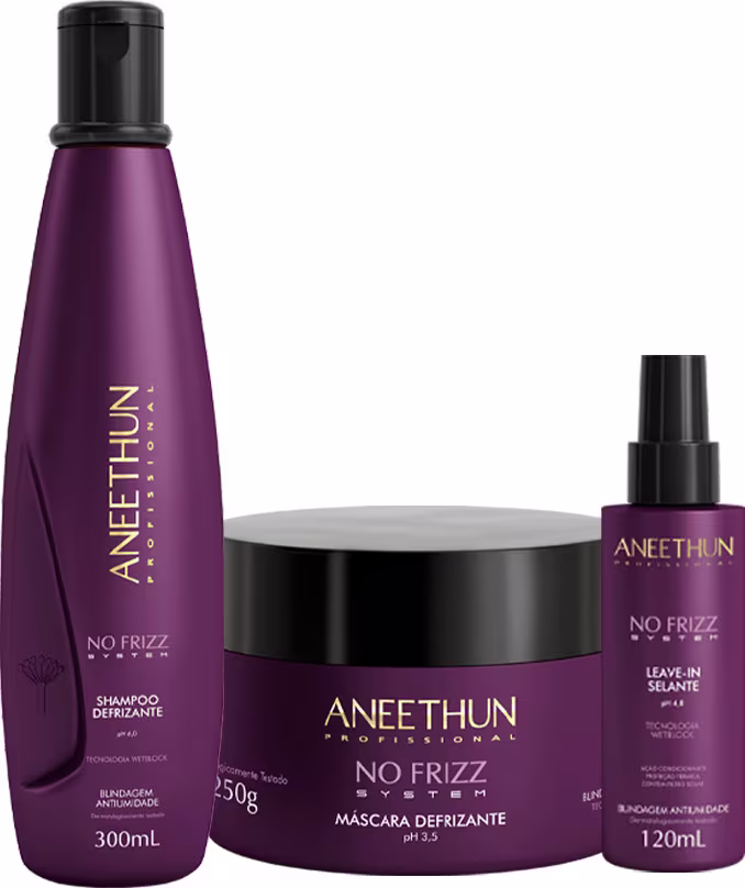 No Frizz System é uma linha de tratamento capilar especialmente desenvolvida para cabelos lisos, ondulados, indisciplinados, com frizz e volume excessivos.