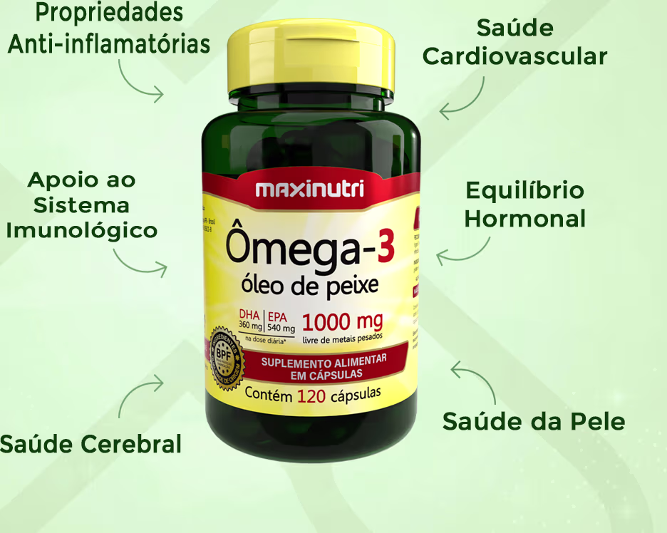 Omega 3 Óleo de Peixe 1000mg Maxinutri 120 Capsulas