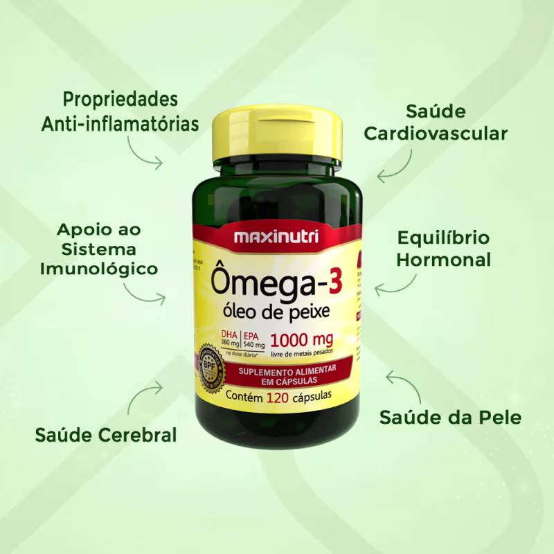 Kit 03 Omega 3 Óleo de Peixe 1000mg Maxinutri 120 Capsulas