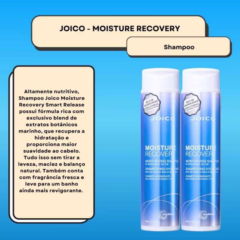 Contém:02 Unidades Joico Moisture Recovery Smart Release Shampoo 300ml