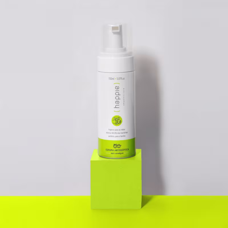 A Espuma Antisséptica Happie para as mãos é a combinação perfeita entre higiene e hidratação.