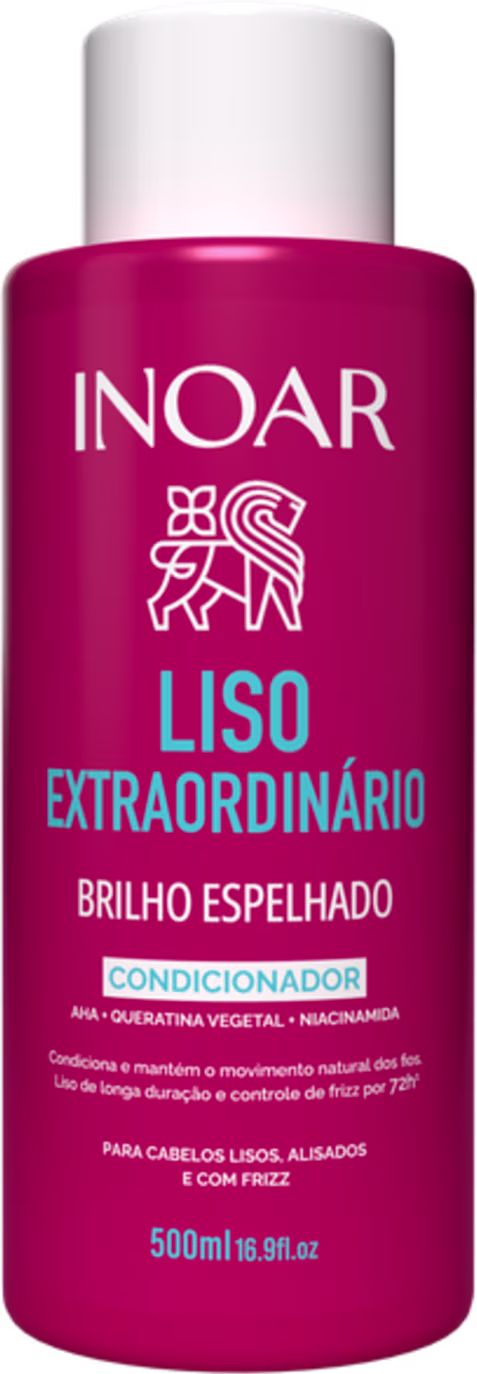 A linha INOAR LISO EXTRAORDINÁRIO foi desenvolvida com tecnologia avançada para proporcionar fios lisos, alinhados e protegidos contra a umidade por até 10 dias. Com os ativos AHA, Queratina Vegetal e Niacinamida, os produtos atuam na reparação da fibra capilar, selagem das cutículas e combate ao frizz desde a primeira aplicação. Ideal para cabelos lisos, alisados ou com frizz. Essa é a rotina completa para um liso de alta performance, sem esforço.