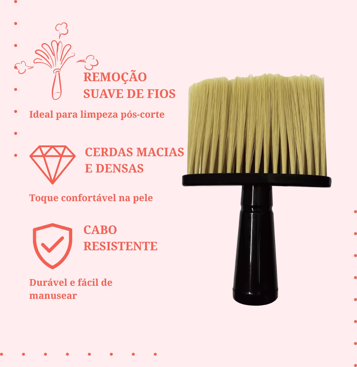 O Espanador Pincel de Barbeiro e Cabeleireiros NYBC Beauty é o acessório ideal para garantir higiene, conforto e profissionalismo no atendimento. Desenvolvido com cerdas macias e resistentes, remove facilmente os fios de cabelo cortados do rosto, pescoço e roupas, sem causar irritação na pele.