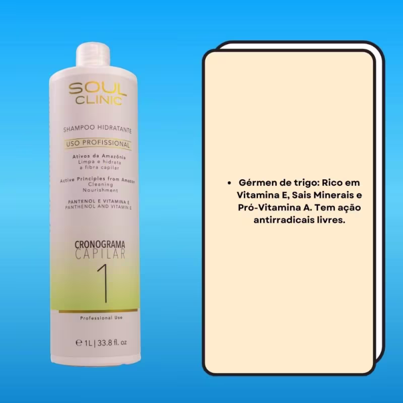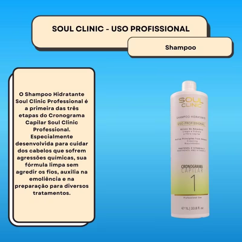 Contém:01 unidade Soul Clinic Cronograma Capilar Hidratante Shampoo 1L