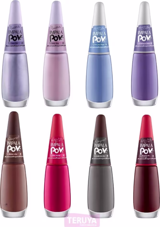 Coleção POV Exclusiva: Inspirada nas tendências digitais, cada esmalte reflete uma vibe única: Arrume-se Comigo, Meu Dump, Daily Vlog, Clean Girl, Look Do Dia, Minha Vibe, For You Page e Entregou Tudo.