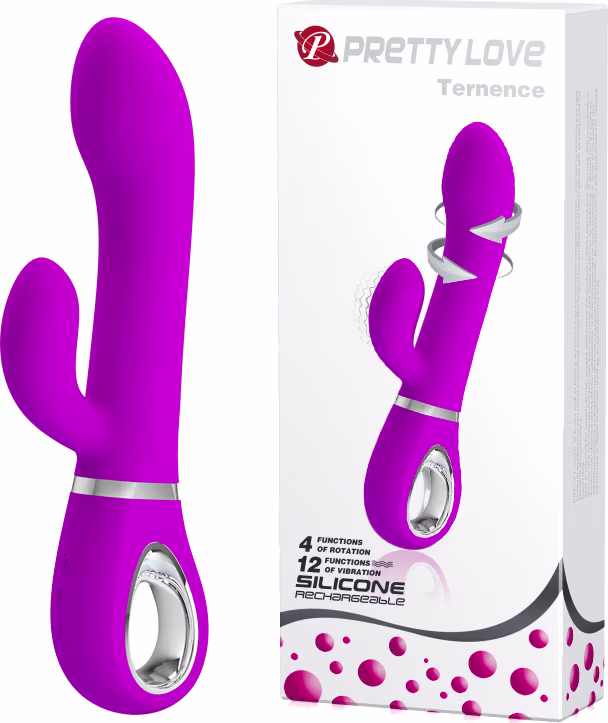 O pretty love ternence é um vibrador rotativo com estimulador de clítoris, recarregável e confeccionado em silicone soft touch, 100% atóxico com toque leve e aveludado. O estimulador possui 12 modos de vibração e a ponta do vibrador possui 4 modos de rotação ou seja, você vai sentir um prazer inexplicável. Com esse produto você terá orgasmos mais intensos, irá conhecer o prazer que o ternence proporciona e fará desse brinquedo o seu favorito!