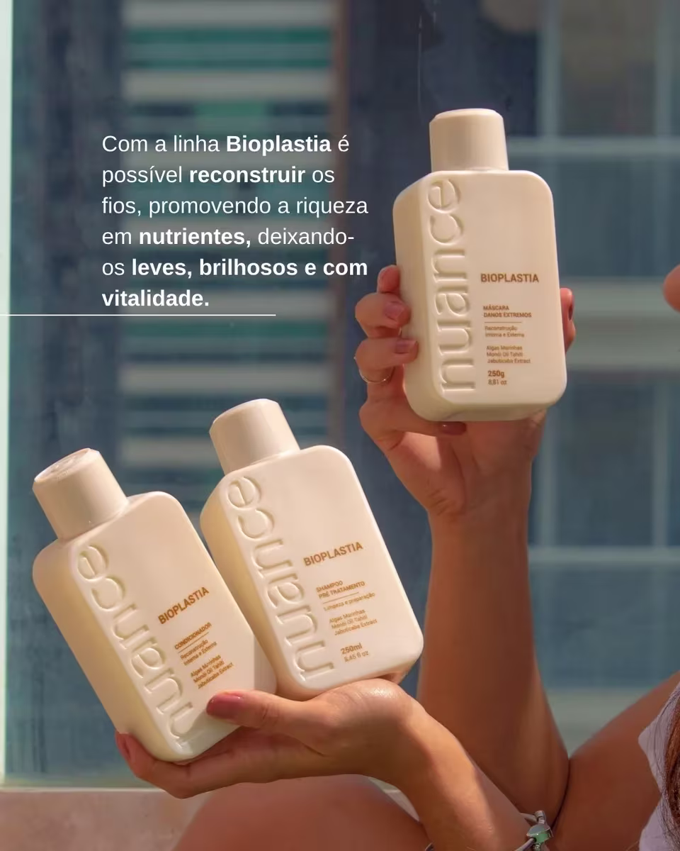 O Shampoo Bioplastia Nuance 250ml é uma solução inovadora para cabelos que precisam de cuidados especiais. Com uma fórmula avançada, ele promove uma limpeza eficaz enquanto trata e repara os fios danificados. Enriquecido com [inserir aqui os ingredientes principais, como ativos de bioplastia, óleos nutritivos e proteínas], este shampoo atua na recuperação da estrutura capilar, proporcionando uma sensação de leveza e vitalidade. Além de limpar profundamente, ele forma uma película protetora ao redor dos fios, ajudando a manter a umidade e protegendo contra agentes externos. Ideal para cabelos quimicamente tratados ou expostos a agressões diárias, o Shampoo Bioplastia Nuance deixa os cabelos macios, brilhantes e extremamente saudáveis.