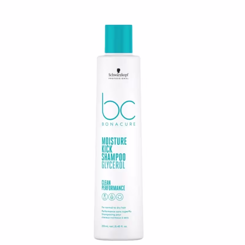 Kit com shampoo e máscara para todos os tipos de cabelo. Schwarzkopf Professional BC Bonacure Clean Performance Moisture Kick Duo Super oferece tratamento em profundidade e suavidade aos fios.