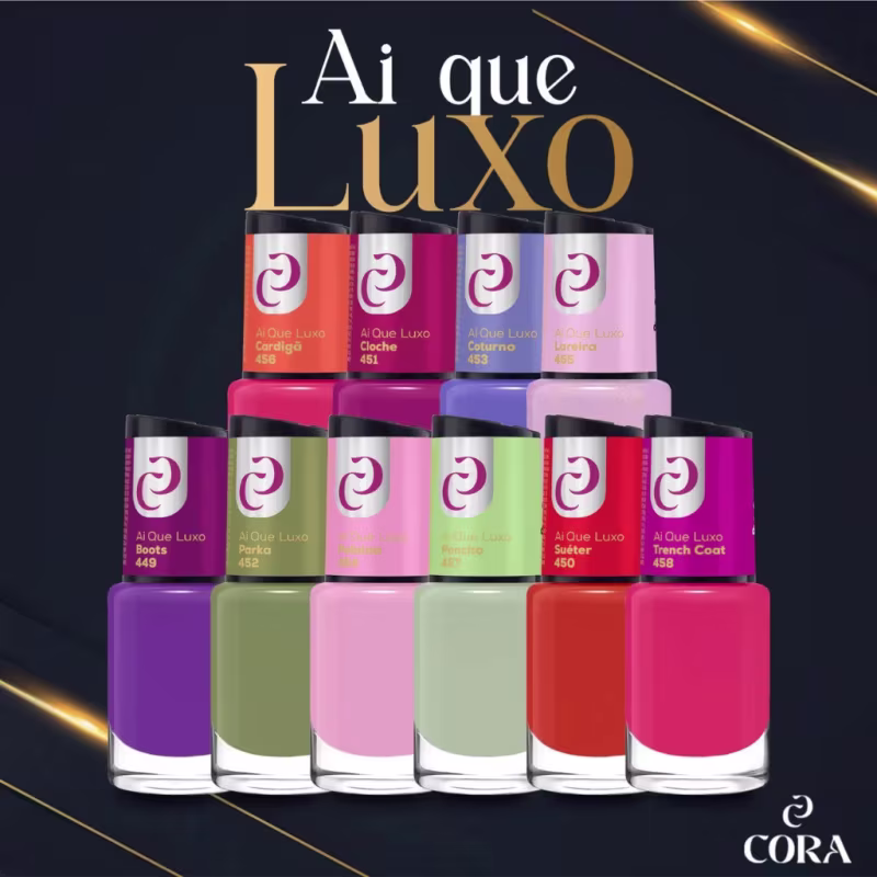 Desde 2008, a Cora Brasil Cosméticos se dedica à inovação e alta performance no cuidado de unhas, mãos e pés. Especialista em cosméticos, higiene pessoal e perfumaria, a marca desenvolve produtos com tecnologia avançada, fórmulas ricas em ativos e uma equipe comprometida em trazer o que há de melhor no universo da beleza. Com uma linha completa de esmaltes e tratamentos especiais, a Cora fortalece, nutre e revitaliza unhas e cutículas, garantindo resultados visíveis e duradouros. Para quem busca beleza, saúde e uma esmaltação impecável, a Cora oferece soluções que transformam o cuidado diário em um verdadeiro ritual de bem-estar.