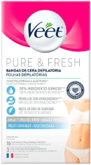 Veet Cera Fria Folhas Depilatórias Pure & Fresh Virilha e Axila Pele Delicada 16 Unidades – Depilação Suave
