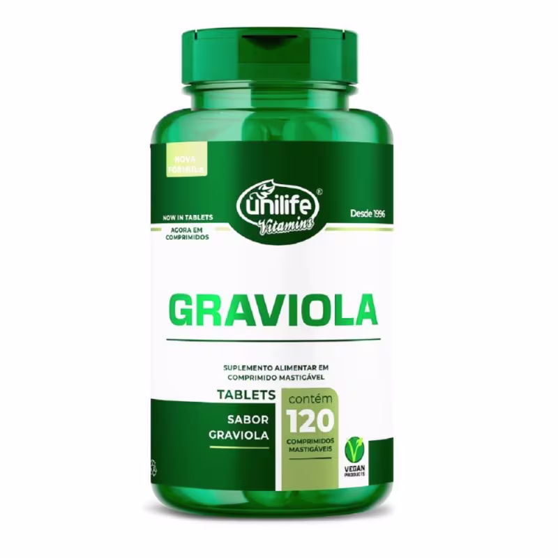 Graviola Unilife Sabor Graviola em comprimidos mastigáveis é um suplemento rico em antioxidantes e vitaminas do complexo B, C e E.