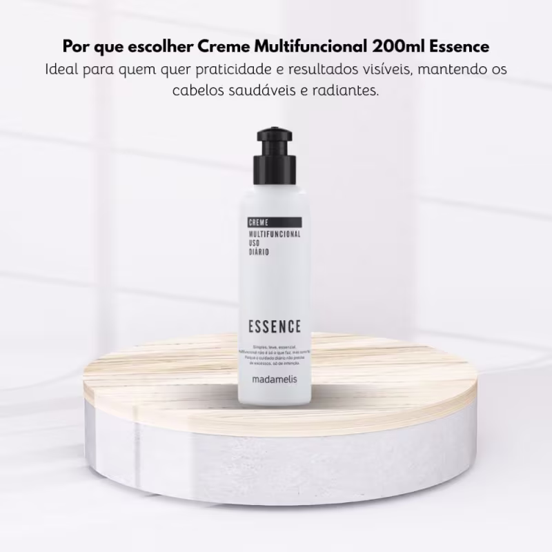 O Madamelis Creme Essence Uso Diário é um creme multifuncional que nutre, desembaraça e protege os fios no dia a dia. Sua fórmula leve facilita a finalização, reduz o frizz e ajuda a manter a hidratação natural do cabelo, deixando os fios alinhados e macios ao toque. Pode ser usado após a lavagem ou como creme de pentear para manter o cuidado contínuo.