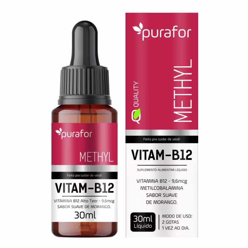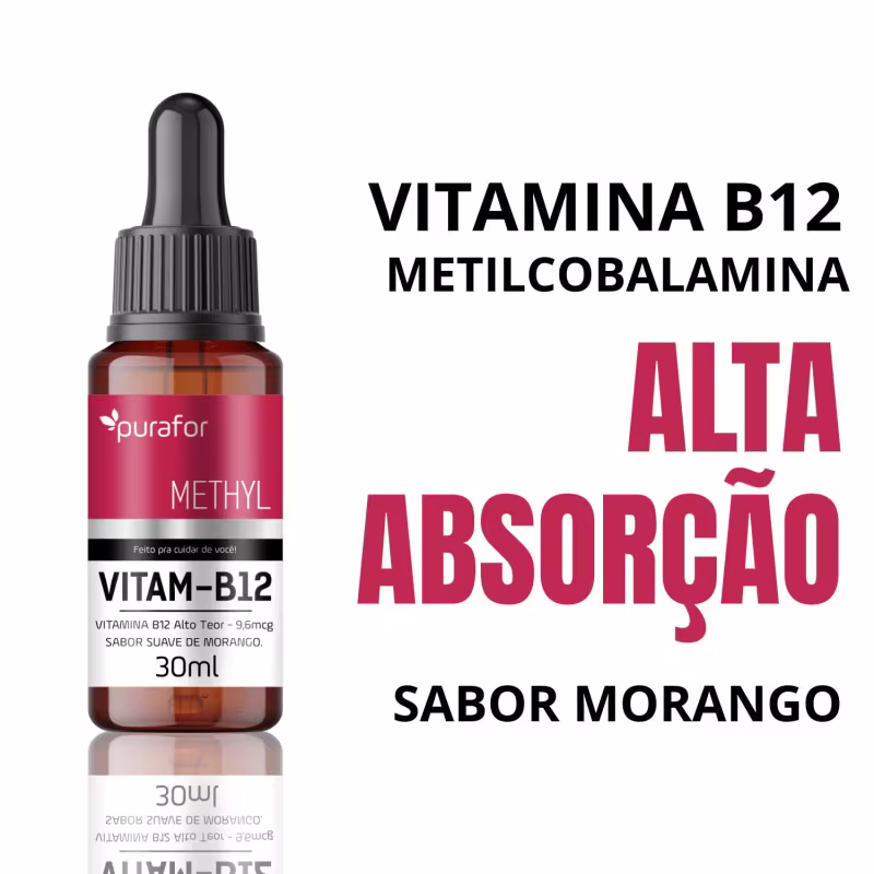 Vitamina B12 Metilcobalamina 30ml Purafor – Sabor Morango, Alta Absorção