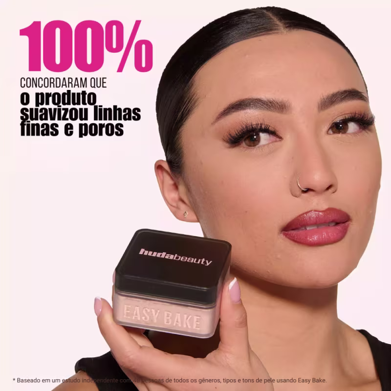 Diga adeus ao "caking" e olá a uma pele impecável com o Pó Solto Easy Bake da Huda Beauty! Inspirado na técnica de "baking" que se tornou viral, este pó de acabamento foi criado para fixar a maquiagem, controlar o brilho e dar à sua pele aquele efeito aveludado e sem falhas, como se tivesse sido retocado no Photoshop.