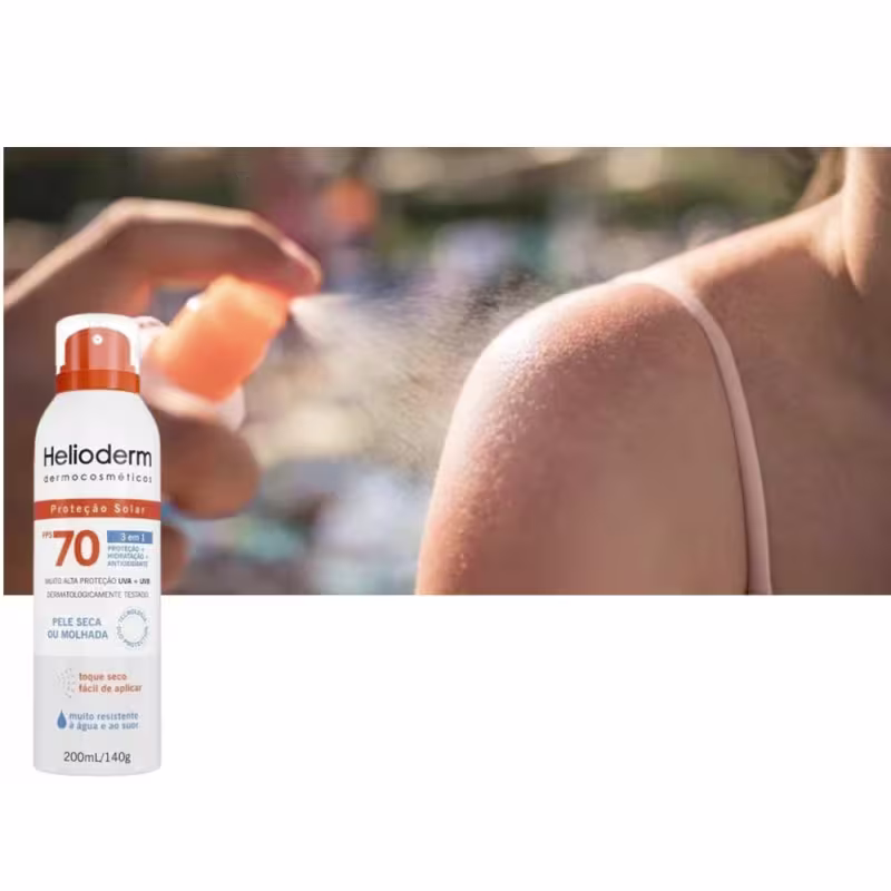 A Helioderm possui uma linha completa de proteção solar para cuidados com o corpo e rosto, com fórmulas exclusivas e tecnologia farmacêutica que hidrata e cuida da pele, enquanto protege e é resistente à água e ao suor e dermatologicamente testada. Ideal para o uso diário de adultos e crianças a partir de 12 anos.. A linha corporal e facial de Helioderm proporciona alta proteção UVA e UVB, protege a pele dos efeitos nocivos causados pela radiação ultravioleta e previne o envelhecimento precoce da pele. Complementando a linha, o Helioderm Efeito Dourado proporciona alta proteção UVA e UVB enquanto auxilia no efeito dourado da pele. Sua fórmula dernocosmética é também desenvolvida com tecnologia farmacêutica e conta com o ativo Pró-Melanina, responsável por intensificar o bronzeado natural da pele.