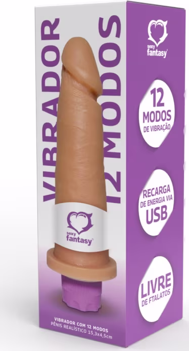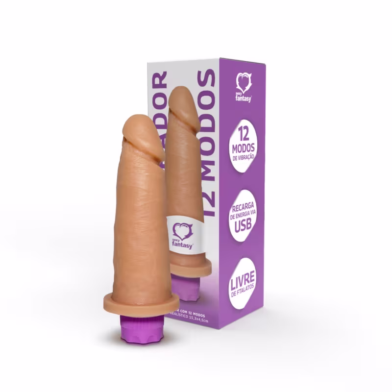 Pênis realístico vibro com 12 modos de vibração 15,3x4,5cm sexy fantasy