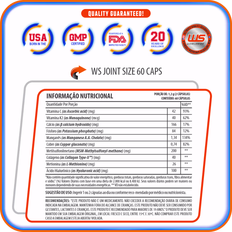 Joint Size Saúde Articular WorldSize 60 Cápsulas