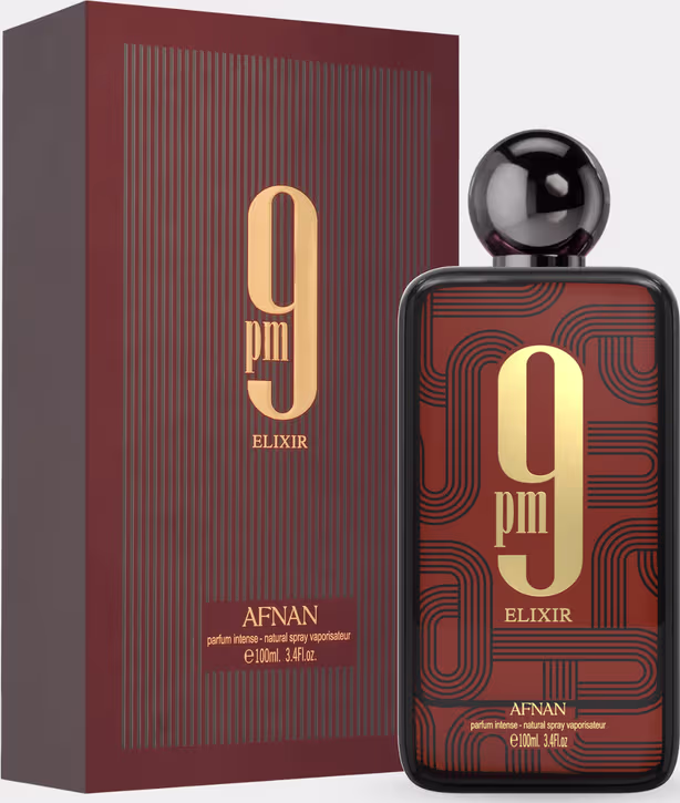 9PM Elixir de Afnan é uma fragrância oriental especiada para mulheres e homens. 9PM Elixir é uma sinfonia cativante de calor, profundidade e charme refinado. Abre com um toque luminoso e especiado que se sente vibrante e misterioso, dando o tom para uma fragrância que chama a atenção.