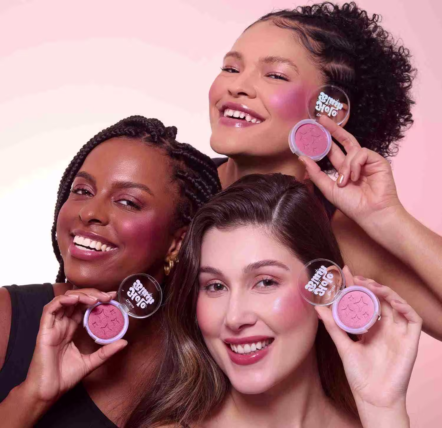 O brilho iridescente tomou conta do make – e por isso te apresentamos o Holo Blush, nosso blush iluminador com o efeito holográfico do momento!