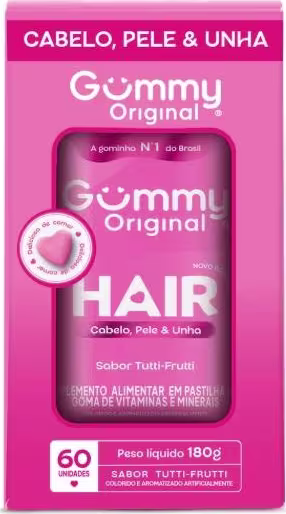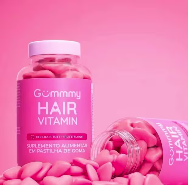 Gummy Hair Vitamin é um suplemento alimentar em gomas com forma de coração. Este suplemento combina várias vitaminas e por isso estimula o crescimento do cabelo, diminuindo a queda, quebra dos fios e ainda contribui para a hidratação natural.