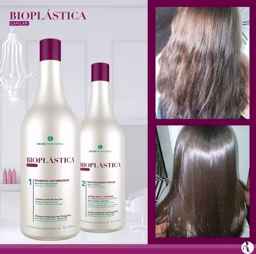 Não sei o CEPO Kit Bioplástica Richée reduz o volume de fios indisciplinados e rebeldes. Sua fórmula enriquecida com ingredientes altamente nutritivos deixará seus fios com efeito liso sem danificá-los. Richée Professional Bioplástica repõe a hidratação na fibra capilar, essencial para a saúde e o movimento do seu cabelo.