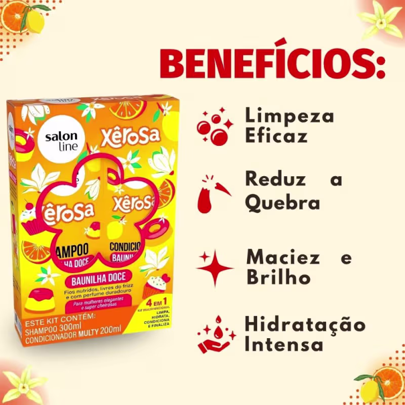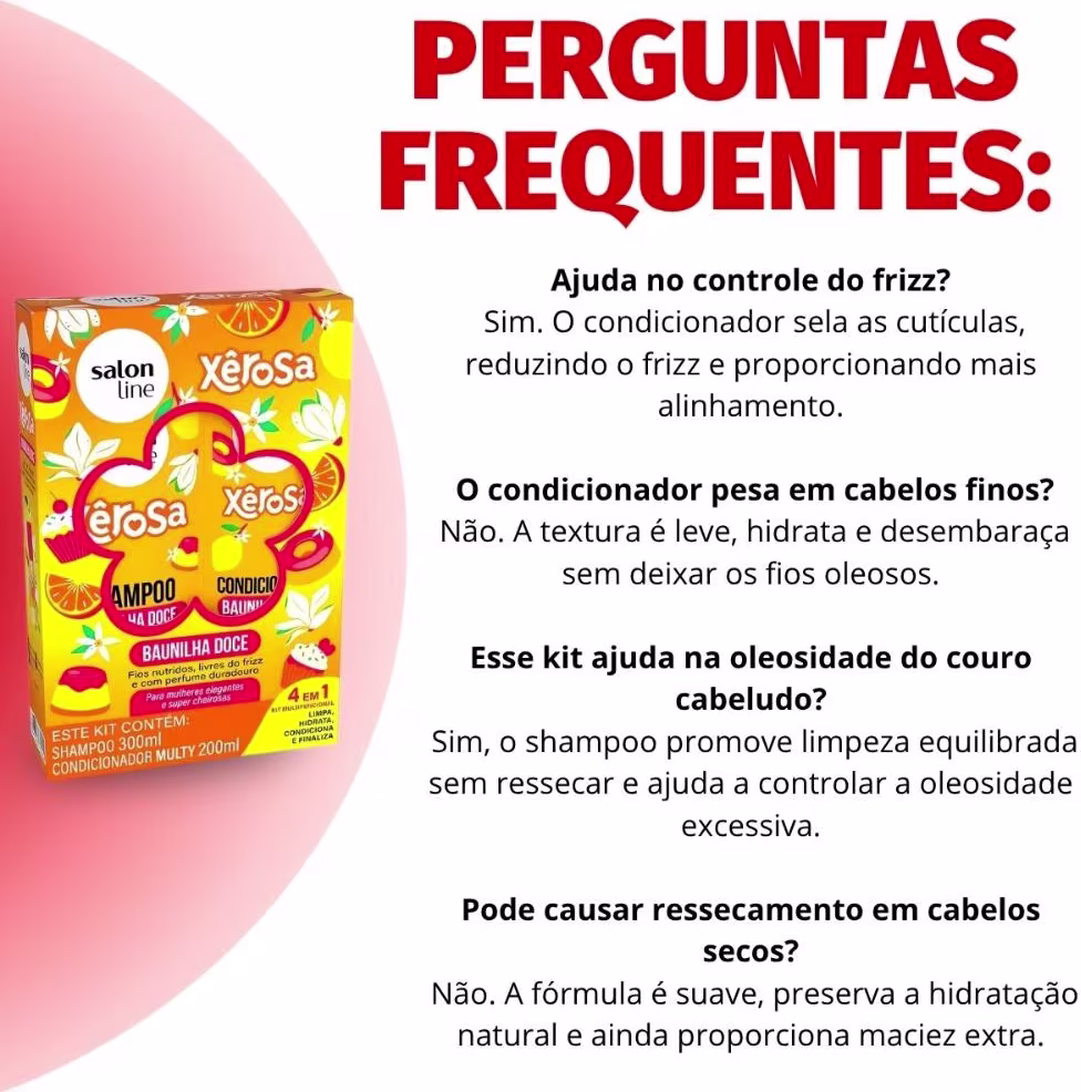 Não sei o CEPDescubra o Kit Salon Line Xêrosa, a dupla perfeita para transformar sua rotina de cuidados capilares em um momento de puro prazer. Desenvolvido pela Salon Line, este kit não apenas limpa e condiciona, mas também envolve seus cabelos em uma fragrância irresistível, elevando sua autoestima e bem-estar. Imagine a sensação de cabelos macios, brilhantes e perfumados o dia todo. Ideal para todos os tipos de cabelo, o Kit Xêrosa é a solução para quem busca praticidade e resultados eficazes, proporcionando uma experiência sensorial única e duradoura.