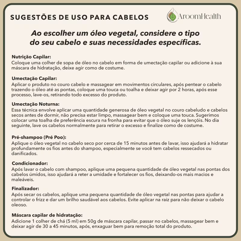 Altamente anti-inflamatório, cicatrizante e regenerador. Com ácidos graxos essenciais e antioxidantes, ele proporciona hidratação profunda à pele e ao cabelo, enquanto combate inflamações e ajuda na regeneração celular. Tradicionalmente utilizado na Amazônia, esse óleo é excelente para cabelos danificados e enfraquecidos, além de ser indicado para tratamentos de pele com dificuldades de cicatrização ou irritações cutâneas.