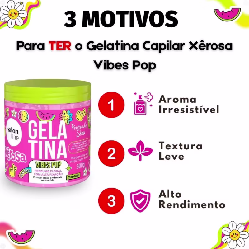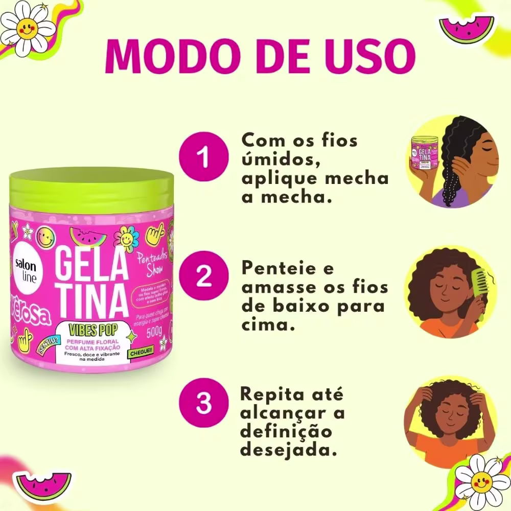 A Gelatina Capilar Salon Line Xêrosa Vibes Pop é perfeita para o uso diário, para criar penteados definidos ou para revitalizar os cachos e ondas, garantindo um visual arrumado e sem frizz em qualquer ocasião.