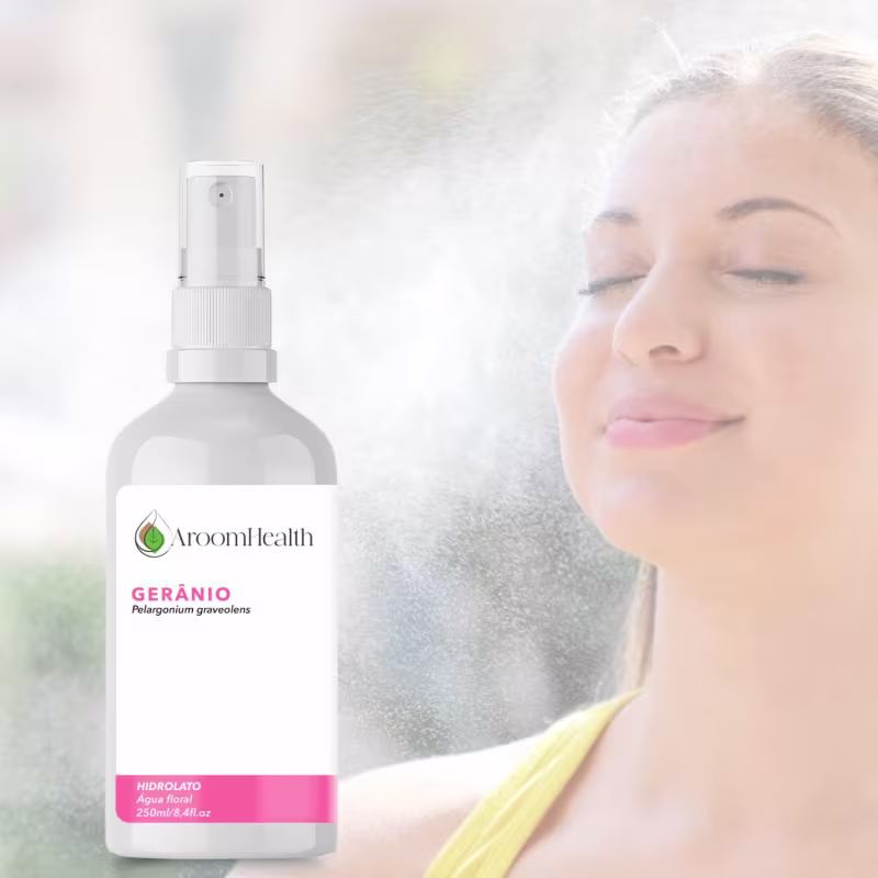 Descubra o poder equilibrante e aromático do Hidrolato Floral de Gerânio da Aroom Health .