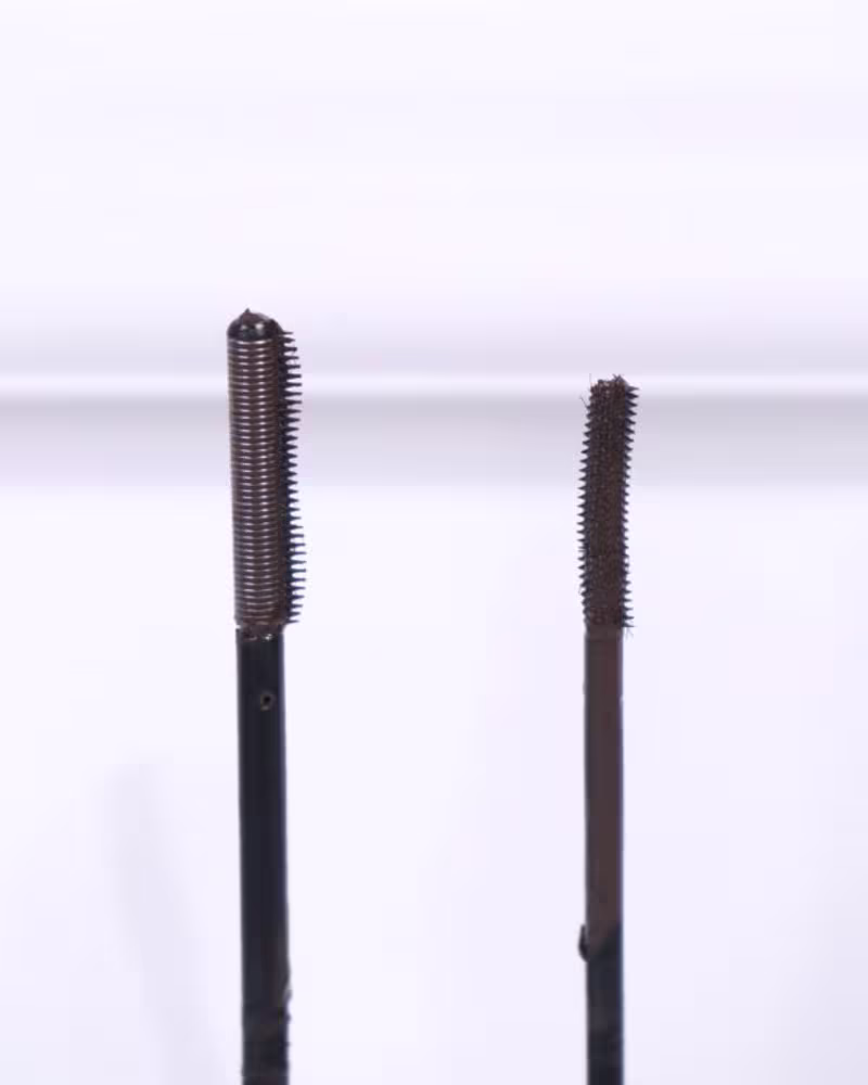 Escova que penteia e separa os cílios com cuidado. Aplica o produto uniformemente e evita que os cílios grudem. Para fixar melhor, toque os cantos dos olhos com a ponta da escova