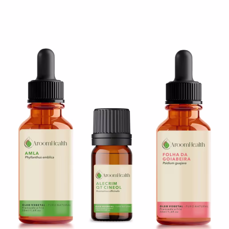 Kit de óleos capilares Amla, Alecrim essencial e Folha da Goiabeira.