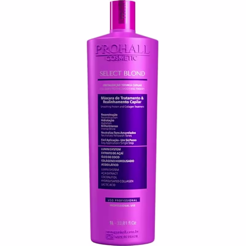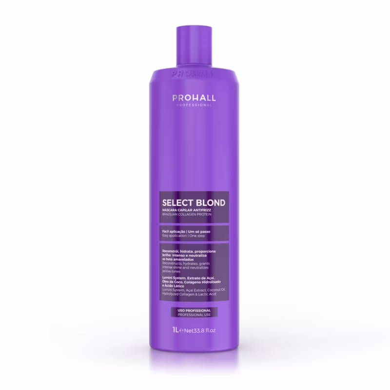 Não sei o CEPA Prohall Select Blond é uma progressiva orgânica profissional especialmente desenvolvida para cabelos loiros, descoloridos ou com mechas. Sua fórmula livre de formol e enriquecida com pigmentos violetas atua no controle do frizz e redução de volume, ao mesmo tempo em que neutraliza os indesejados tons amarelados, garantindo fios mais alinhados, disciplinados e com efeito liso natural.