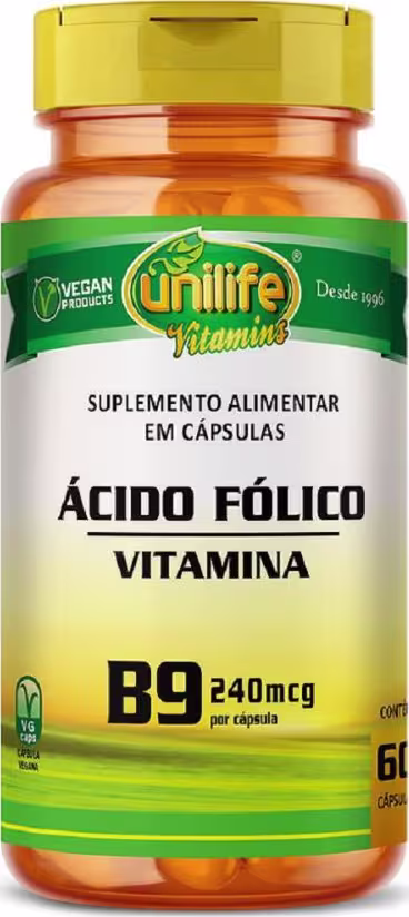 Não sei o CEPA Vitamina B9 Unilife Vitamins é um suplemento vegano, desenvolvido a partir de vitamina B9. O ácido fólico atua na formação do tubo neural do feto durante a gravidez, na síntese de aminoácidos, no processo de divisão celular, funcionamento do sistema imune, no metabolismo da homocisteína e na formação das células vermelhas do sangue.