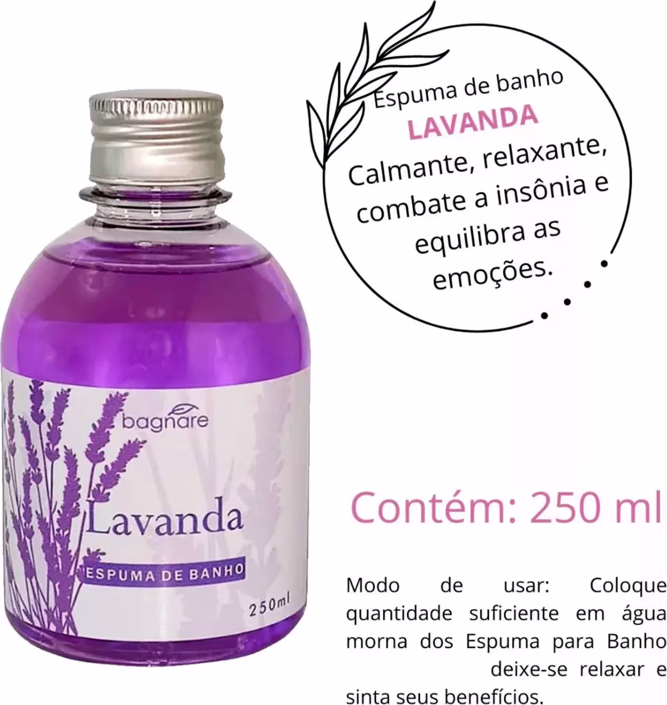 Com fragrância suave e envolvente de lavanda, esta espuma é ideal para quem busca relaxar após um dia cansativo. O aroma da lavanda é conhecido por suas propriedades calmantes e relaxantes, ajudando a aliviar o estresse, combater a insônia e equilibrar as emoções.