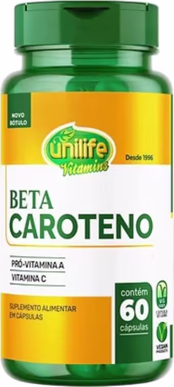 Não sei o CEPO Betacaroteno Unilife é um suplemento alimentar em cápsulas vegano, desenvolvido a partir de extrato de betacaroteno e ácido ascórbico revestido (vitamina C)