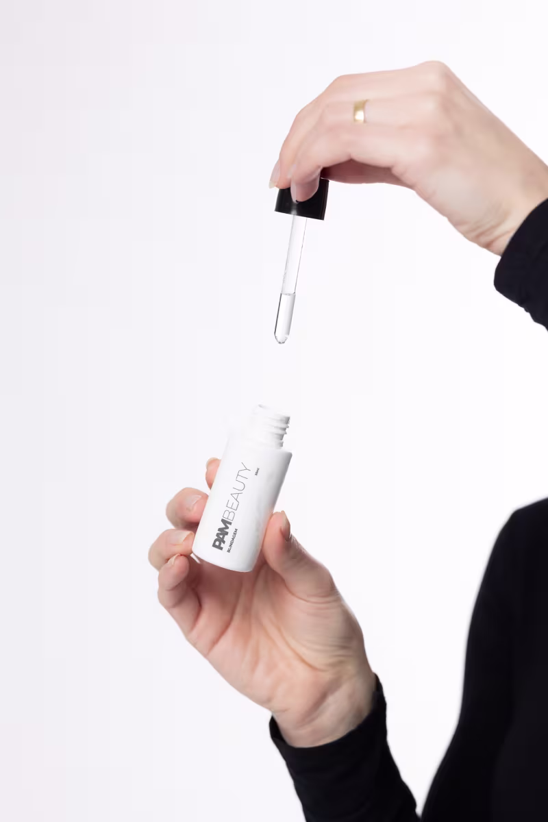 Aplique uma pequena quantidade da Blindagem PAMBEAUTY sobre a pele limpa e seca, espalhando com os dedos ou pincel antes da base