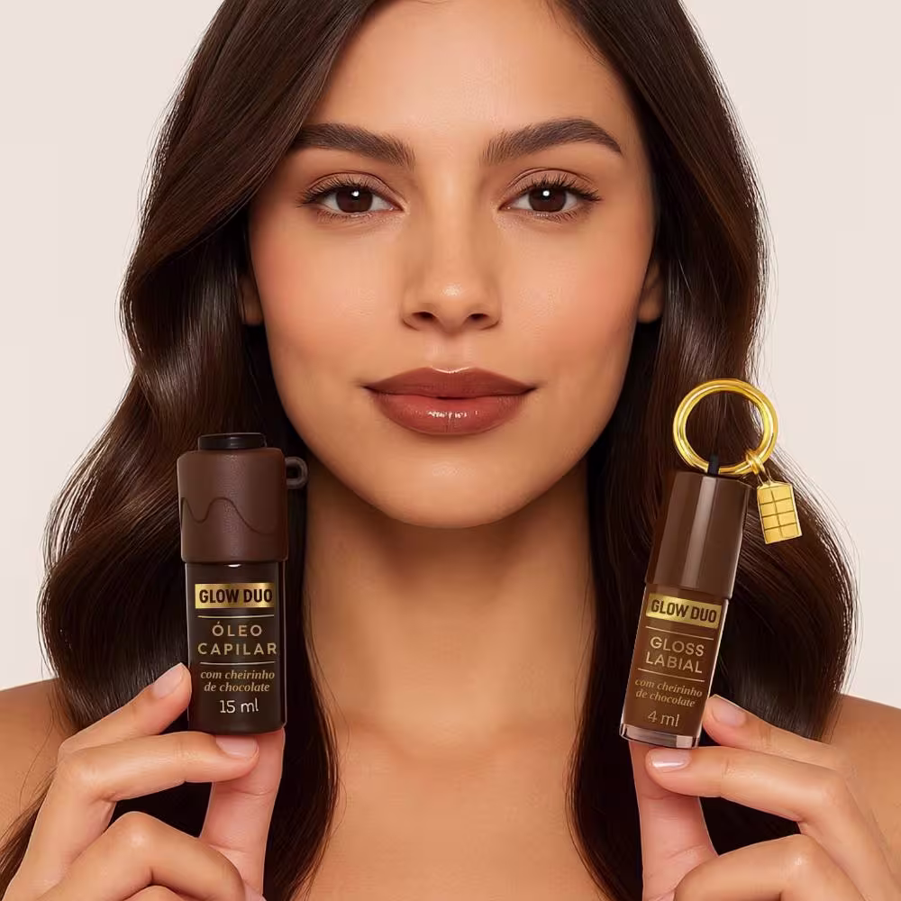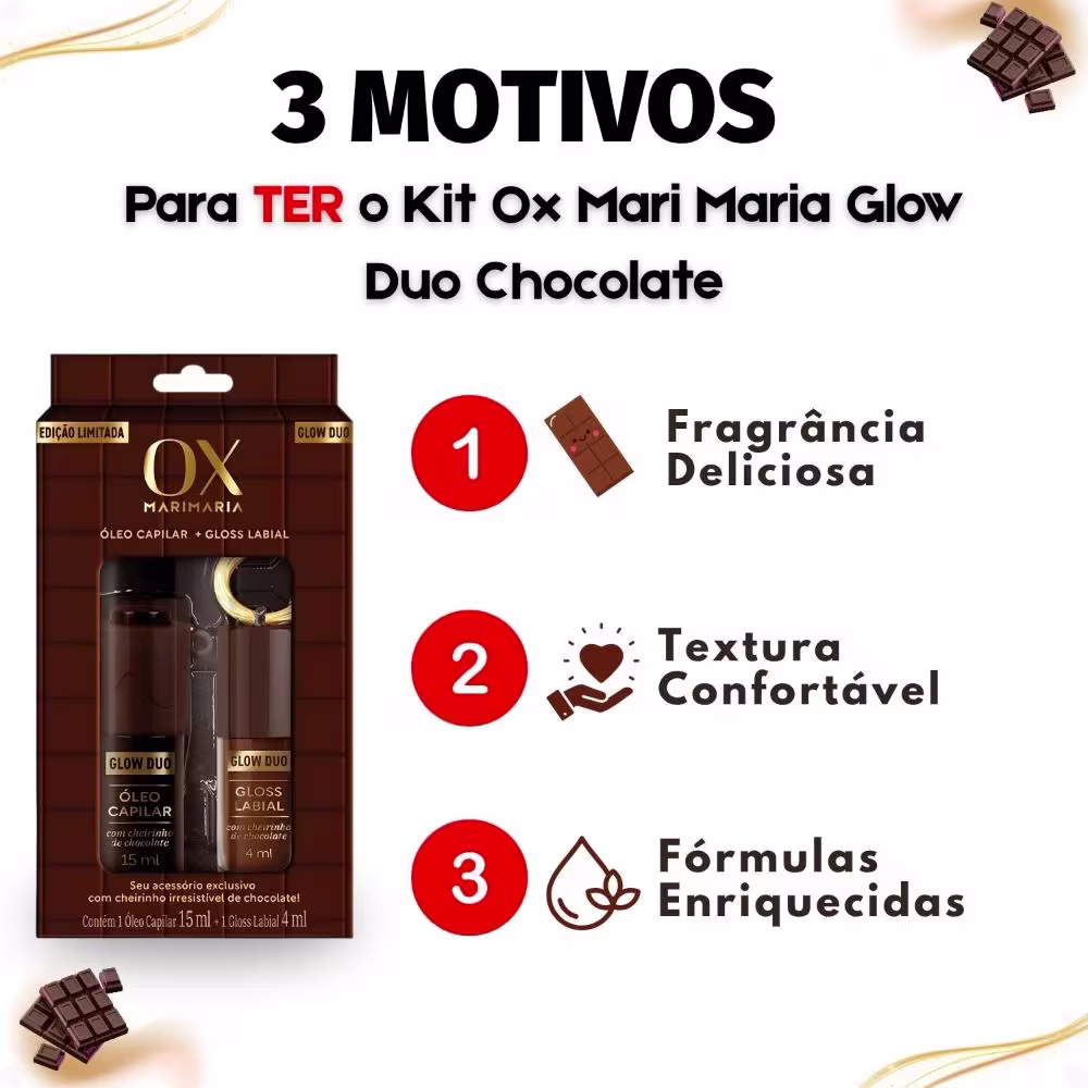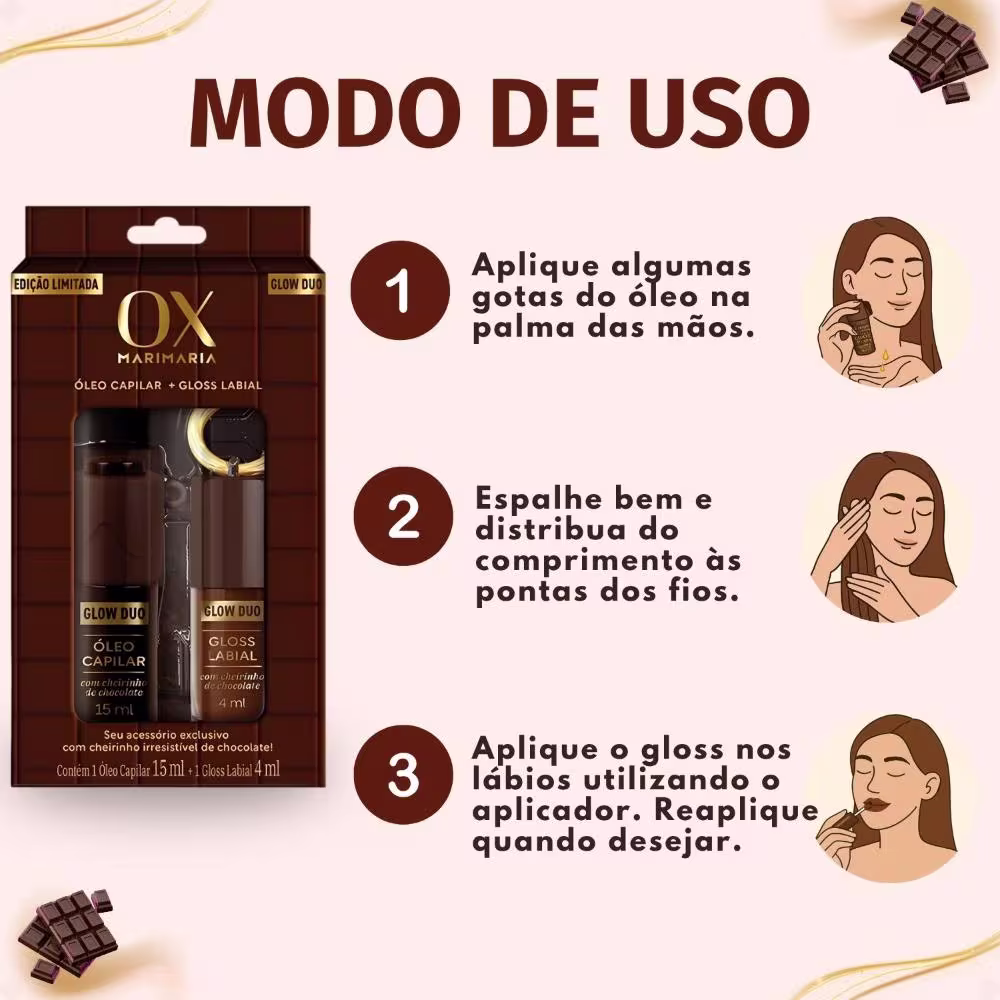 Kit Ox Mari Maria Glow Duo Chocolate Com Chaveiro: Óleo Capilar e Gloss Labial