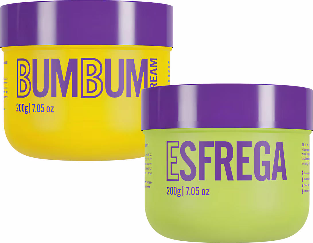 O Kit Cuidado Perfeito Beleza Brasileira combina dois queridinhos do autocuidado corporal: o Bumbum Cream e o Esfrega Esfoliante. Juntos, eles renovam, hidratam e deixam a pele com toque aveludado, ajudando no cuidado contra estrias, celulite, flacidez e pelos encravados.