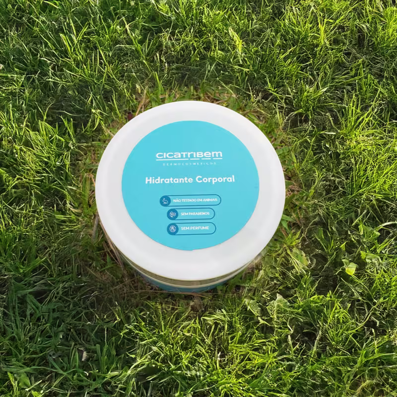 O Hidratante Corporal sem perfume Cicatribem, enriquecido com óleo mineral, extrato de aveia e óleo de girassol, hidrata e ilumina a pele.