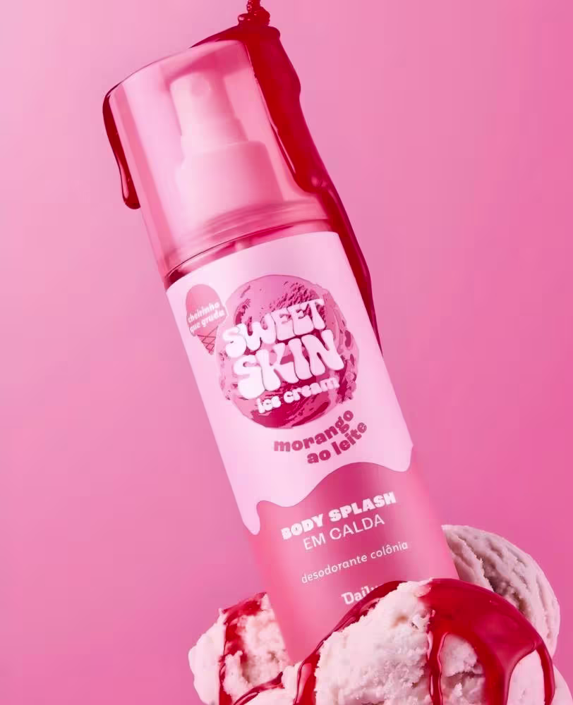 Body Splash Em Calda Dailus Sweet Skin Ice Cream Morango Ao Leite 200ml