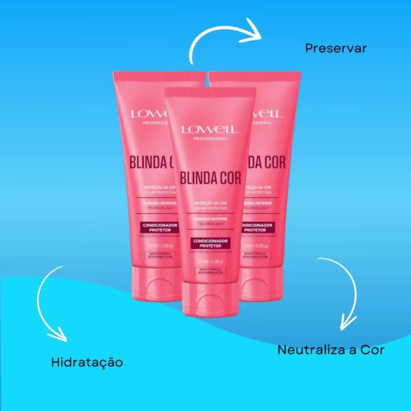O Lowell Blinda Cor Condicionador Protetor 200ml é um produto desenvolvido especialmente para cabelos coloridos e descoloridos, com o objetivo de preservar a intensidade da cor, proporcionar hidratação profunda e conferir brilho intenso aos fios.
