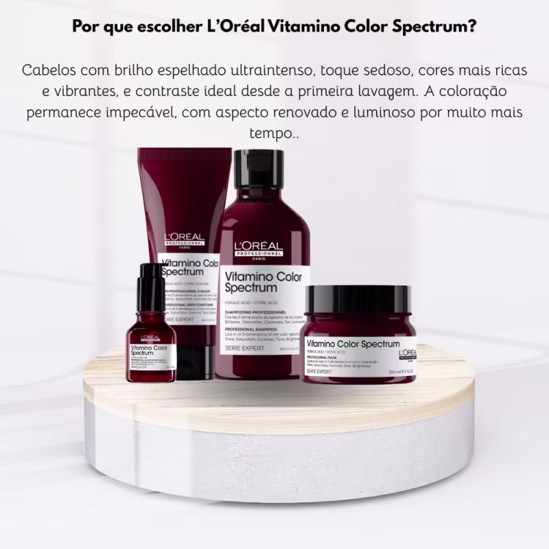 Não sei o CEPPerfeito para cabelos coloridos de todos os tipos – lisos, cacheados, ondulados ou alisados – o Shampoo Vitamino Color Spectrum, Condicionador Vitamino Color Spectrum, Máscara Vitamino Color Spectrum e Sérum Vitamino Color Spectrum é ideal para quem busca preservar a cor vibrante, o brilho intenso e a luminosidade dos fios por mais tempo.