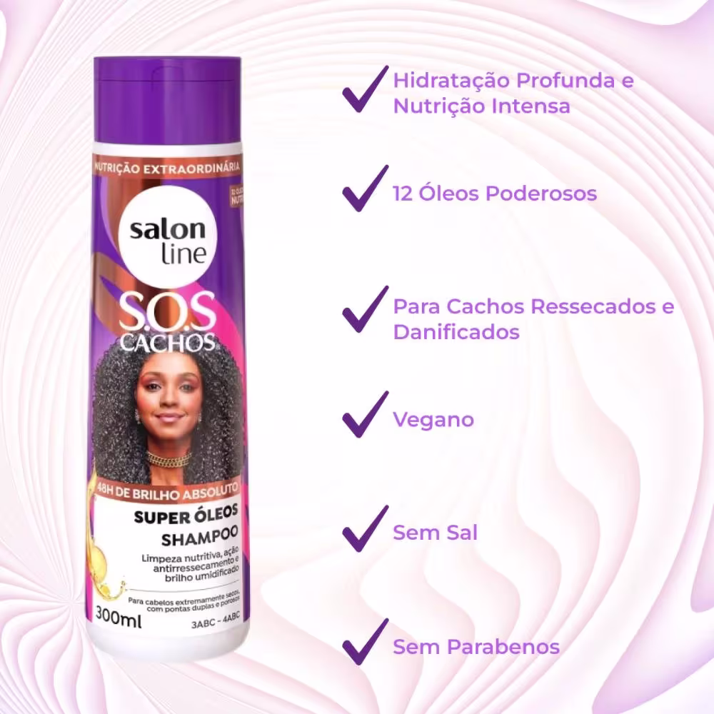 Contém02 unidades Salon Line S.O.S Cachos Super Óleos Shampoo 300ml