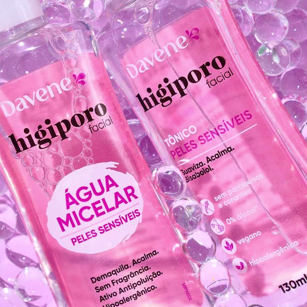 A Água Micelar Higiporo Pele Sensível 130ml da Davene é a escolha ideal para quem busca um produto de limpeza eficiente e suave, garantindo uma pele limpa, acalmar e revitalizada sem agredir ou ressecar, mantendo seu conforto e saúde.