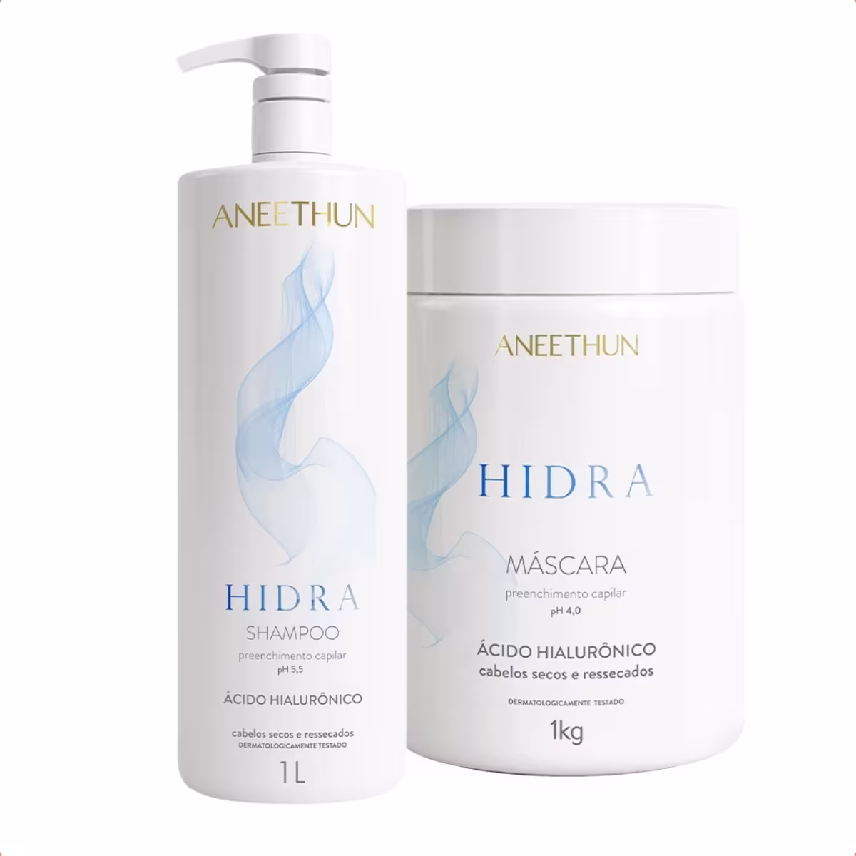 O Kit Hidra Aneethun foi desenvolvido para promover hidratação intensiva, controle do frizz e restauração completa da fibra capilar. Indicado para cabelos secos, ressecados, crespos ou cacheados, o kit combina o poder de limpeza suave do shampoo com o tratamento de alta performance da máscara. Ideal para uso profissional em salões ou para cuidados intensivos em casa.