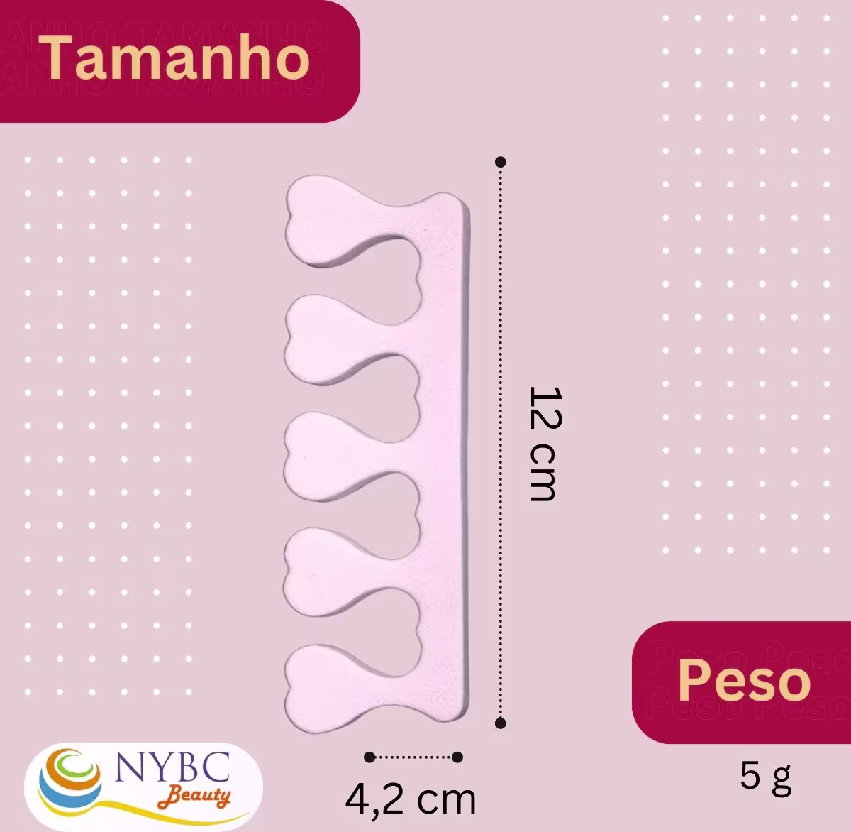 O Kit Separador de Dedos NYBC Beauty foi desenvolvido para oferecer conforto e praticidade durante o cuidado com as unhas dos pés. Produzido em EVA macio e flexível, é ideal para manter os dedos afastados de forma delicada, evitando o contato entre as unhas recém-esmaltadas e garantindo um acabamento perfeito. Leve e higiênico, é indispensável em procedimentos de pedicure, tanto em casa quanto em salões. É composto por 10 kits (20 unidades)